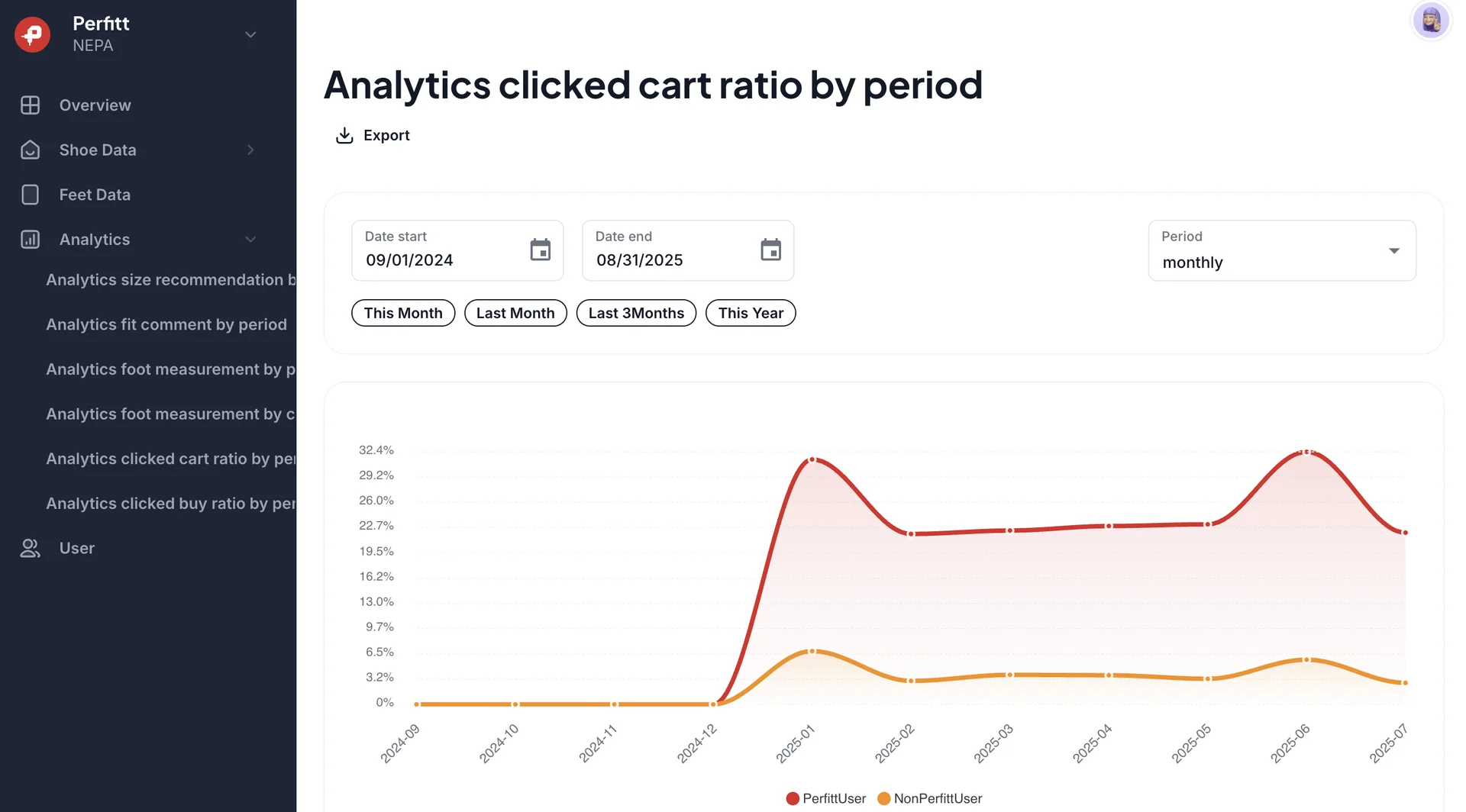 This demonstrates that Perfitt’s solution is not only helping customers add items to their carts but also giving them the confidence to proceed with immediate purchases—directly impacting NEPA’s sales funnel.